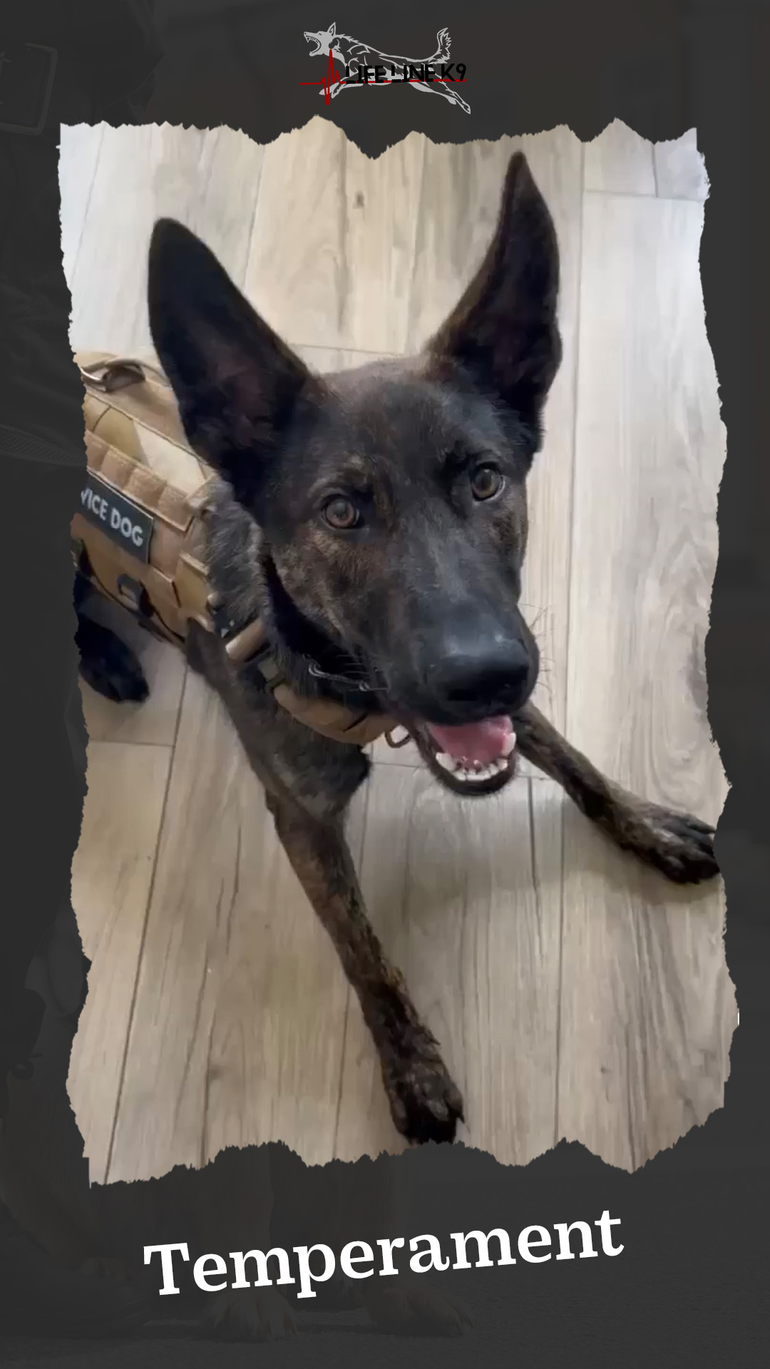 The temperament of Lifeline K9 dogs is calm, focused, disciplined, and trainable. They have a high tolerance for stress, making them well suited for high pressure environments. They can stay under control and remain obedient even in the most challenging situations. Their temperament also allows them to transition from active duty to relaxation, making them ideal for working roles as well as companionship off the job.